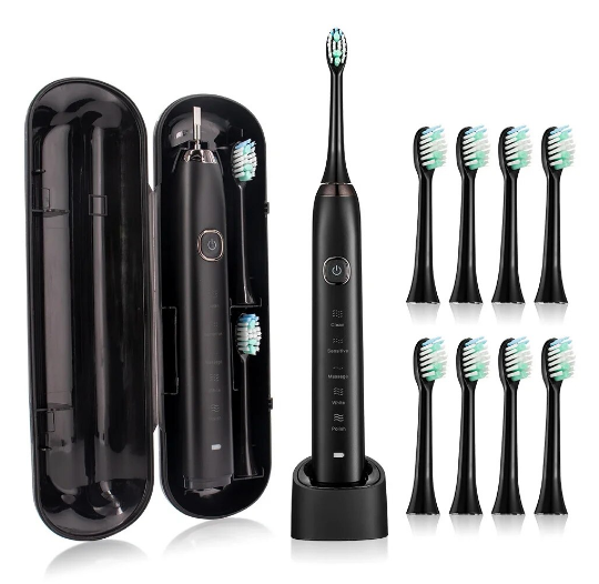 Tannbørsten kommer med åtte ekstra børstehoder og et reiseetui, noe som tilbyr stor praktisk nytte og enkel transport. Den inkluderer instruksjoner for en gradvis tilpasning til ulike rengjøringsmoduser, som forbedrer brukeropplevelsen ytterligere.